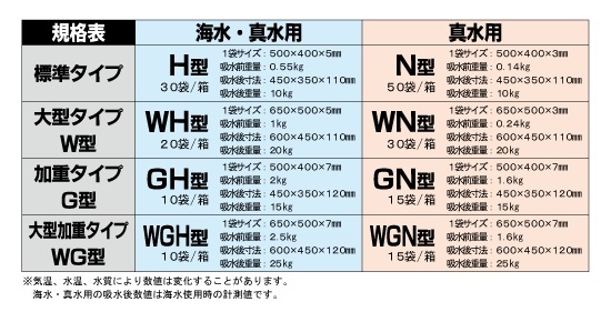 ○本品は台風災害時の使用を想定しているため、水温が16℃以下の場合は吸水スピードが低下します。
