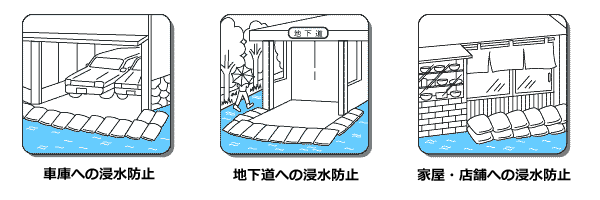○家屋、店舗、学校、病院、駅ビルなどの浸水防止に御使用下さい。